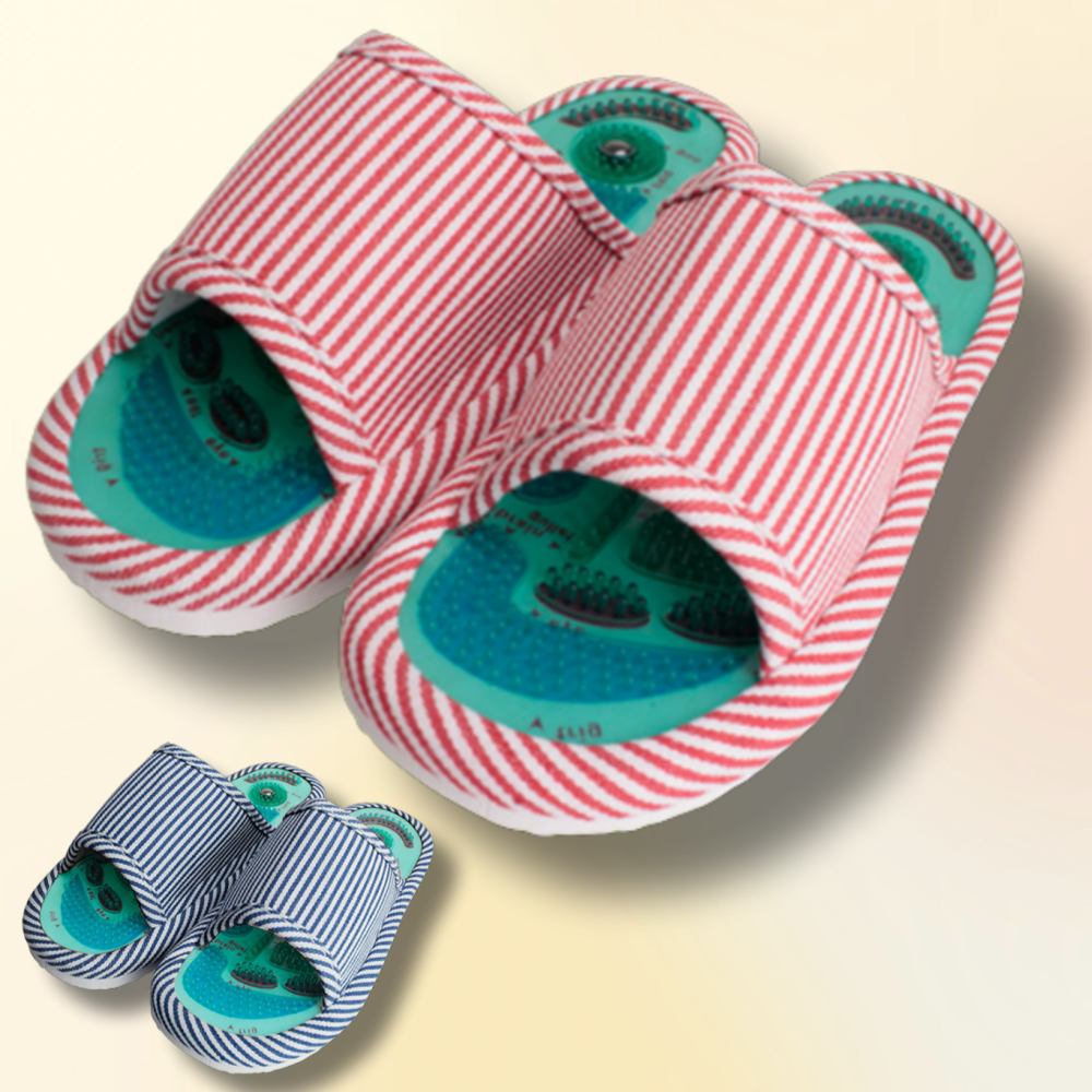 지압슬리퍼는 신발의 바닥 부분에 작은 돌기나 패드가 있어 발바닥을 자극하는 슬리퍼입니다. 전통적인 발지압 원리를 응용하여 제작된 것으로, 신발을 신는 것만으로도 발 지압 효과를 얻을 수 있습니다. 발바닥에는 신체 장기와 연관된 다양한 경혈점이 분포되어 있어, 지압슬리퍼가 발의 특정 부위를 자극함으로써 건강에 긍정적인 효과를 준다고 합니다.